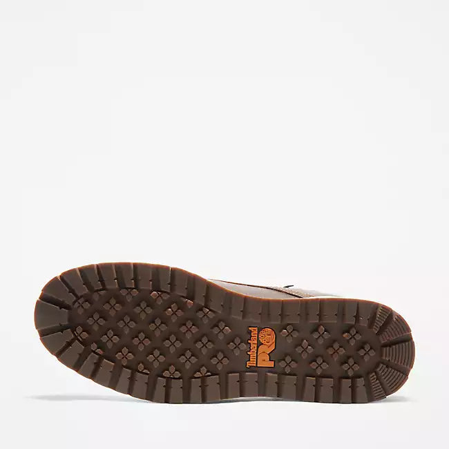 Our Timberland PRO® Irvine Wedge work boots bring comfortable performance to those long days on your feet. This moc-toe style features premium Timberland® full-grain leather uppers with padded top collars and our Anti-Fatigue Technology polyurethane footbeds that absorb shock and return your energy with every step. We added alloy safety toes, electrical hazard protection, and plenty of structural support with fiberglass shanks and ExoSpine™ technology for lasting durability and improved heel fit. You'll also find breathable, moisture-wicking linings made of ReBOTL™ material containing at least 50% recycled plastic with an antimicrobial treatment for odor control, plus lightweight, cushioning EVA midsoles and our heat-, oil-, slip-, and abrasion-resistant rubber outsoles for enhanced traction